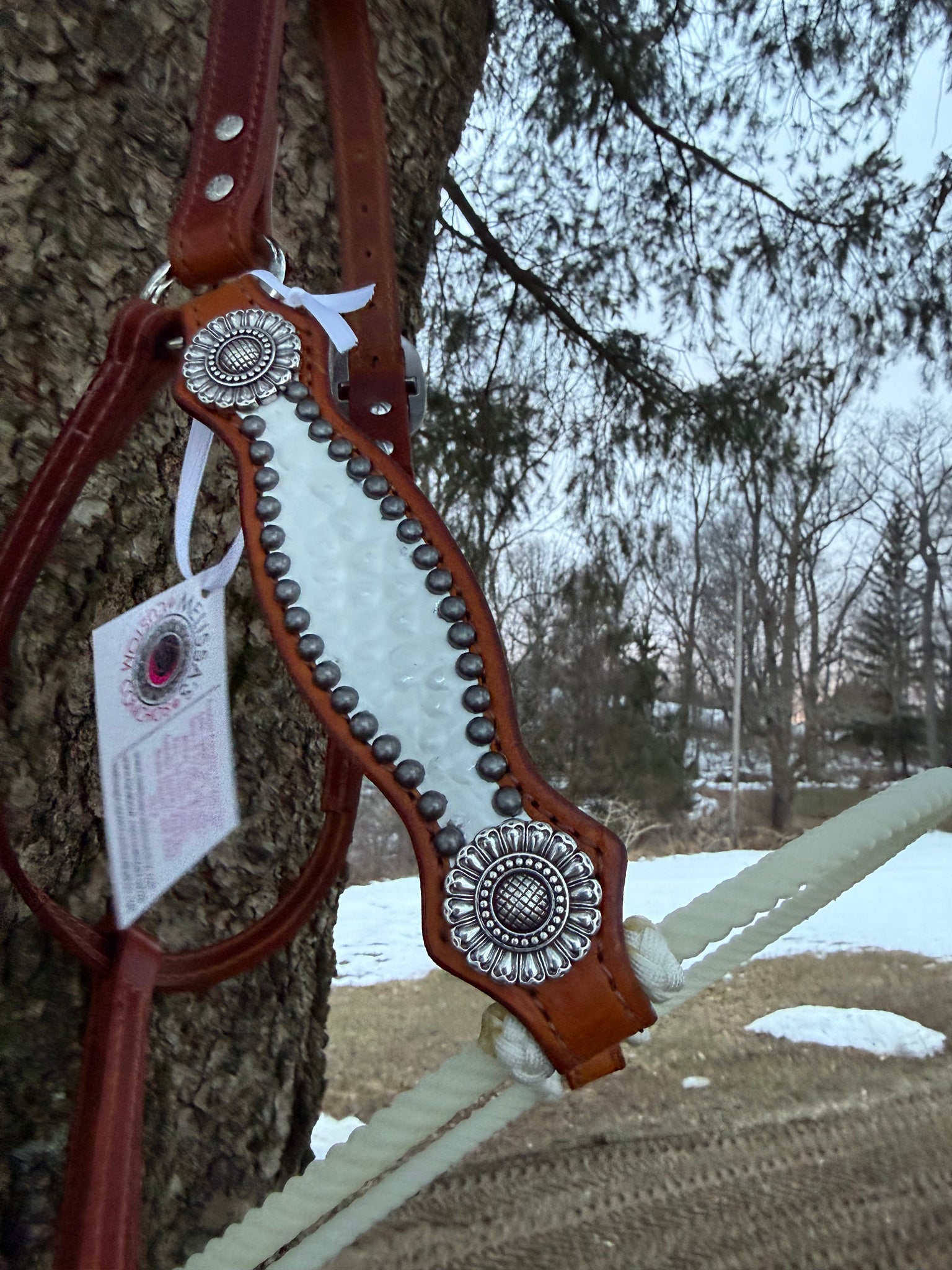 White Gator All Leather Halter. Tan oil. Horse size.
